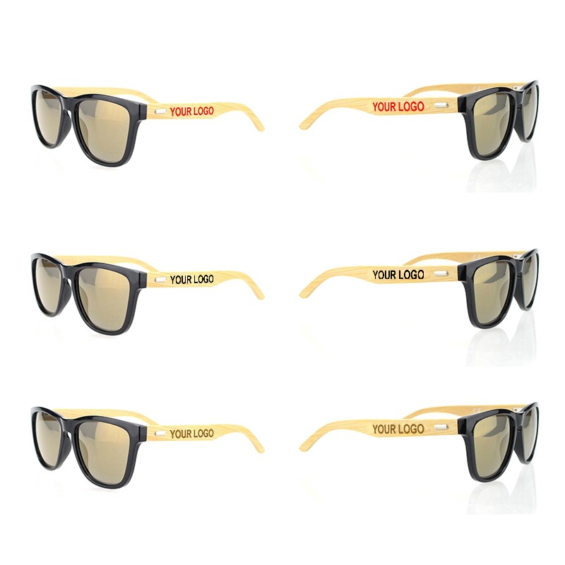 Lunettes de soleil UV400 avec branches en bambou – personnalisables avec logo comme objet publicitaire