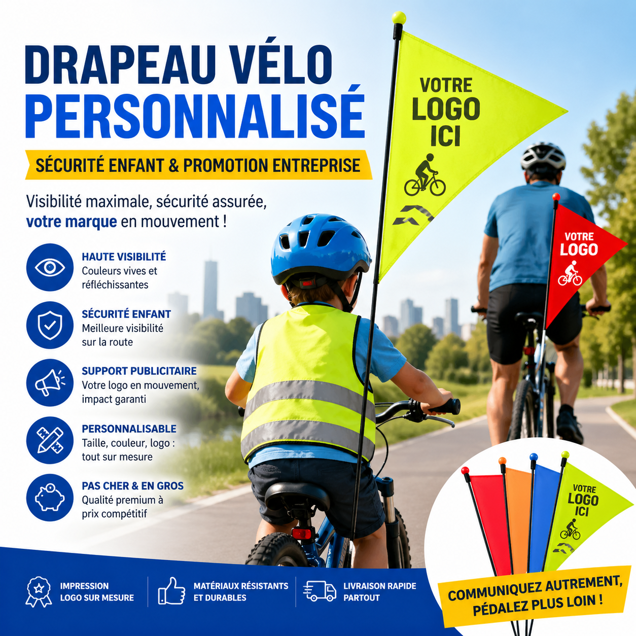 Drapeaux de vélo personnalisés avec logo – accessoires publicitaires pour visibilité et sécurité